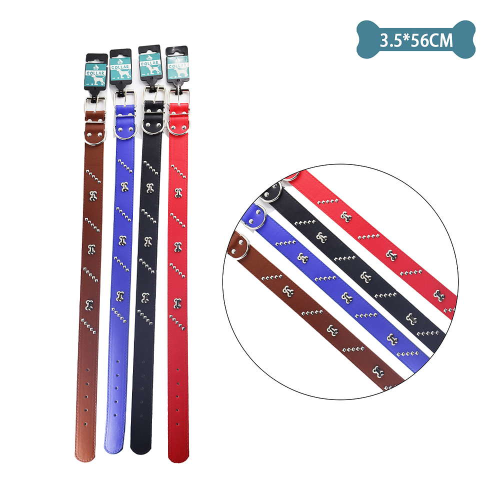 Collar PU con tachuelas y hueso Color Aleatorio 3.5cm*56cm 12pcs