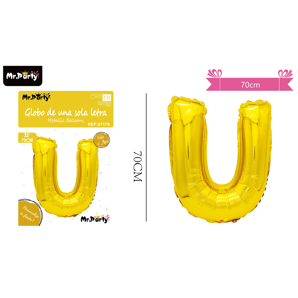 Globo metálico dorado 70cm letra U