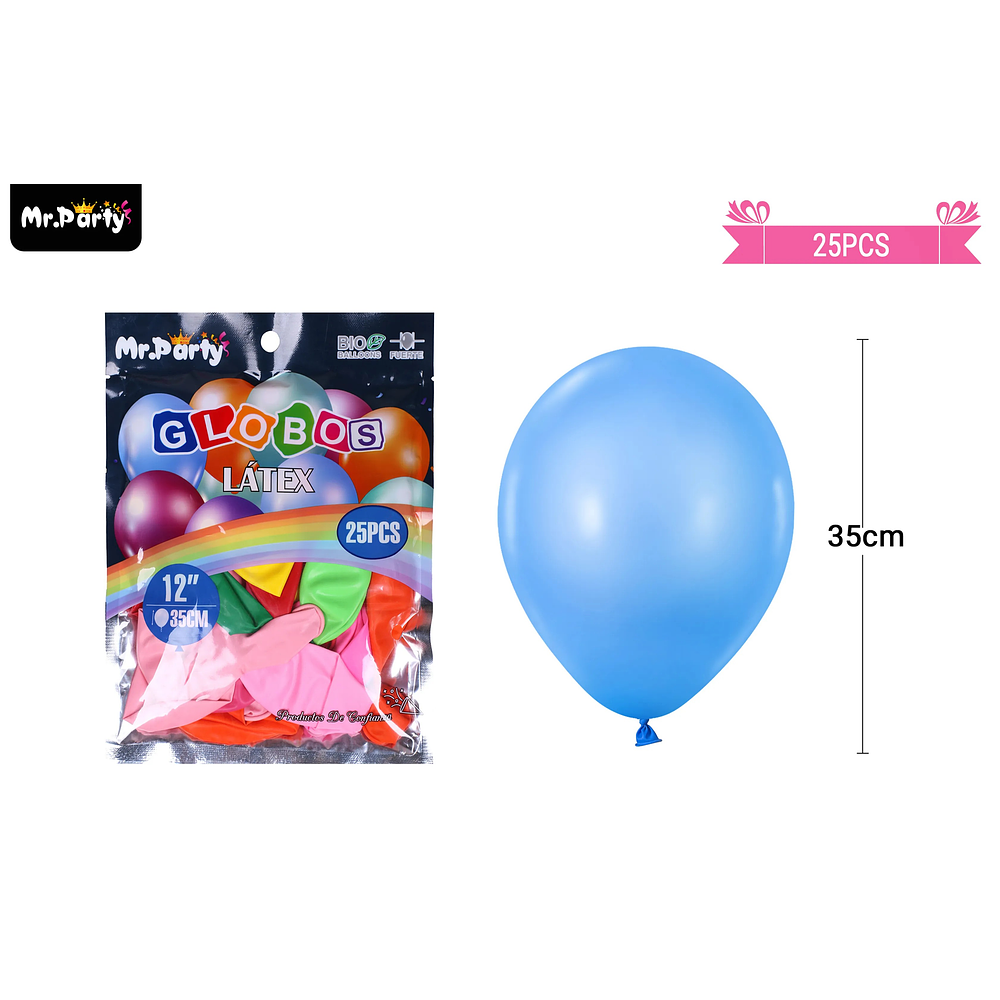 Globos de látex perlado colores surtidos 35cm 25pcs