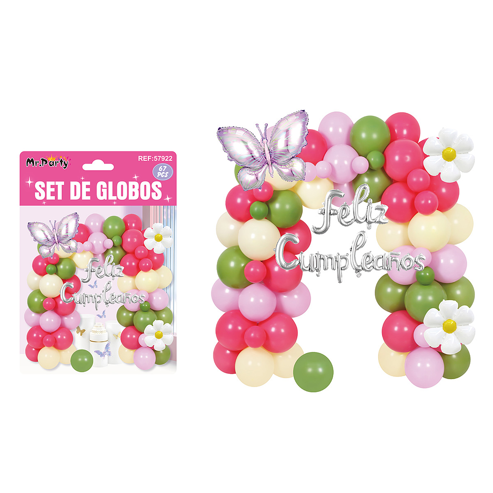 Set con arco de globos feliz cumpleaños 67pcs