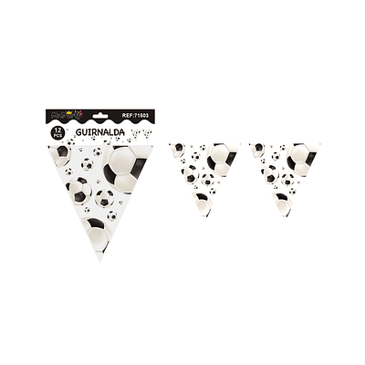 Banderines triangulares fútbol blanco y negro 6pcs